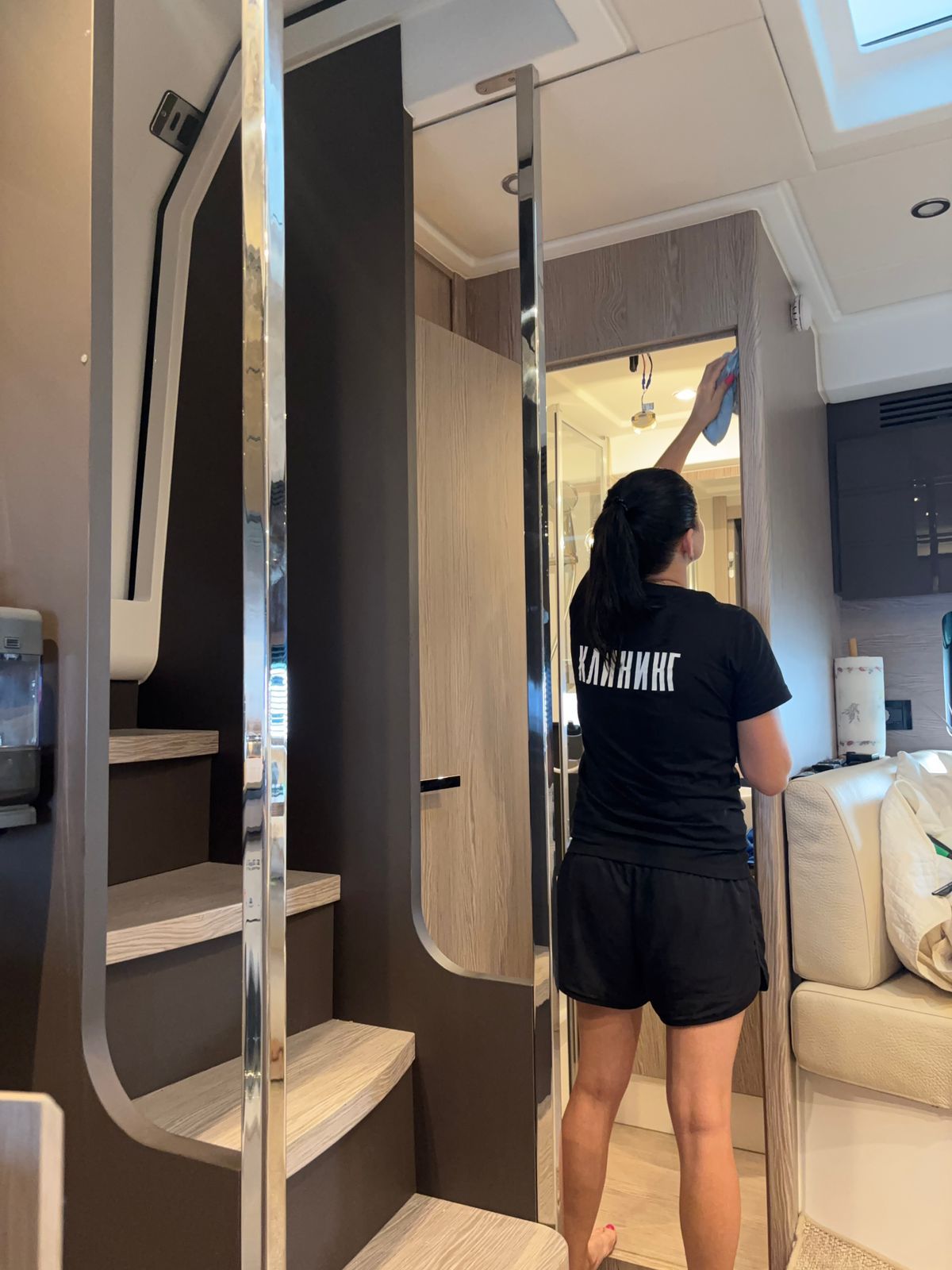 Наши специалисты уделят вниманию химчистка мебели и и ковровых покрытий. Уборка и мойка палубы. Дезинфекция санузла. Очистка и уход стеклянных и зеркальных покрытий. Обработка водоотталкивающими средствами иллюминаторов. Полировка деревянных покрытий и различного металла. Так же у нас имеется такая услуга как генеральная уборка яхты в Краснодаре, такую уборку хорошо проводить в начале и в конце сезона, так же до проведения какого то торжества и после.